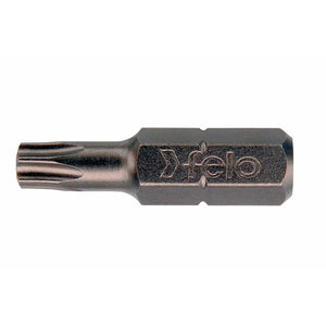 Felo Industrial Series Professional Bit for TX15 TR Safety Pin Screws 25mm Long. Made of high-quality, hardened to hard toughness steel. Has a longer service life than conventional bits. Drive - 1/4" hexagon