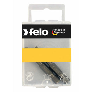 The 50 mm Industrial series bit set is designed for assembly, disassembly and repair work with Torx 20 type fasteners. Felo bits are made of high-quality tool steel (CrMoV), hardened in oil, so they have increased hardness (> 62 HRC) and are resistant to high loads. The forged part of the bits does not wear down, so when tightening the fastener, the nozzle does not turn in the head. Felo Industrial bits are suitable for daily professional use