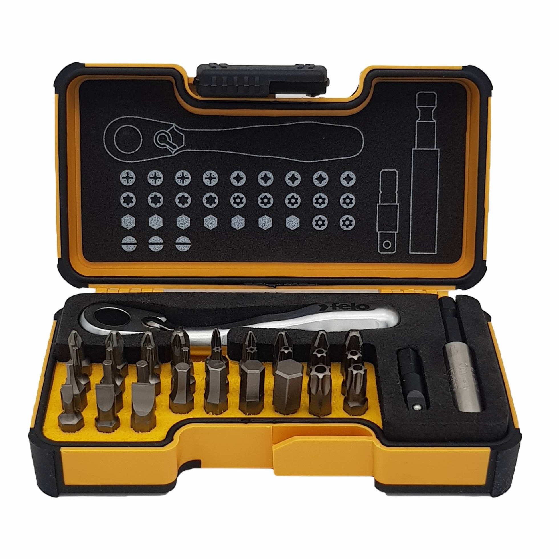 Felo 05773306 XS Box SL, Hex, PH, PZ, TX Bits Mini Ratchet, Bit Holder - 33 piece