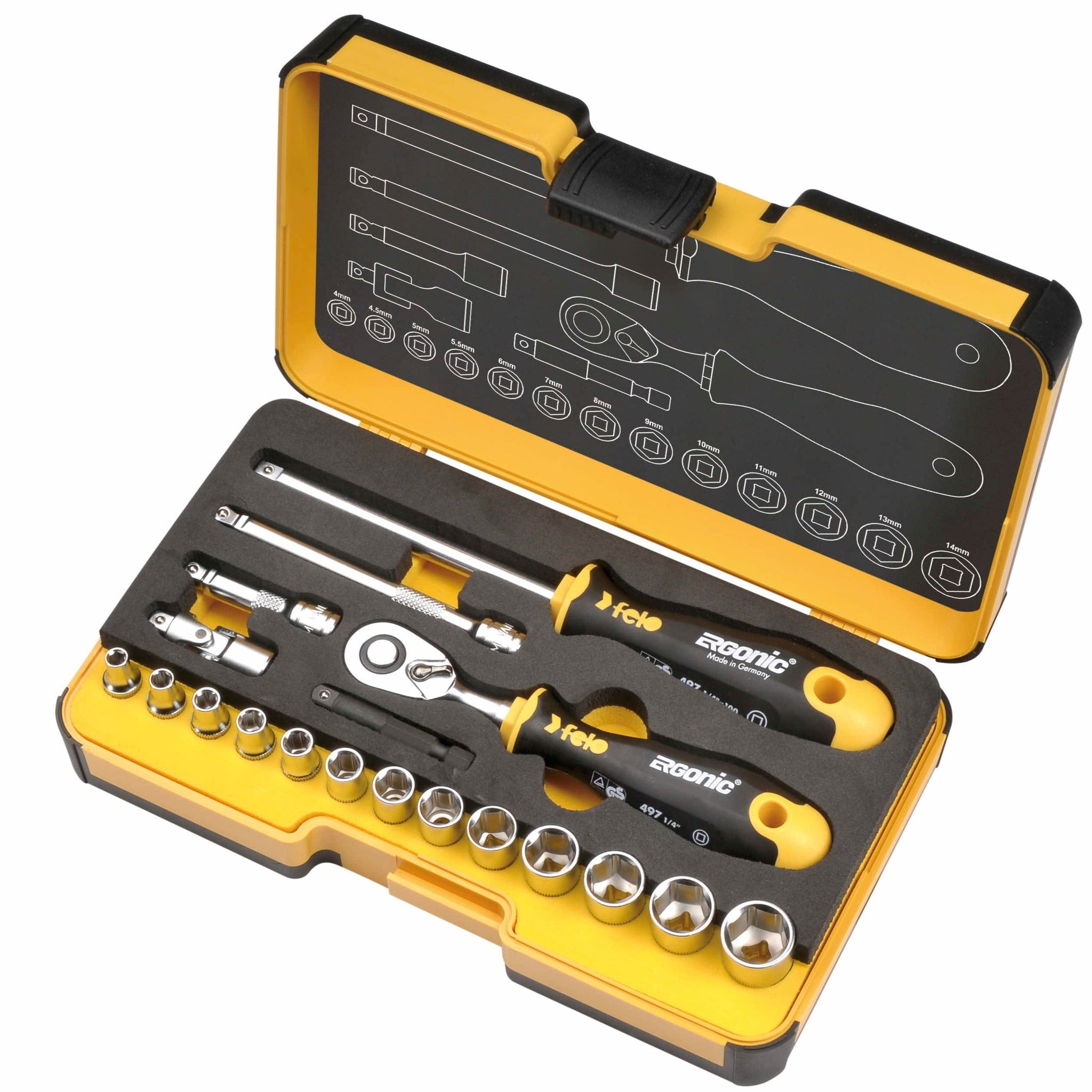 Felo 05781956 R-GO Box Sockets, Ergonic Ratchet - 19pc