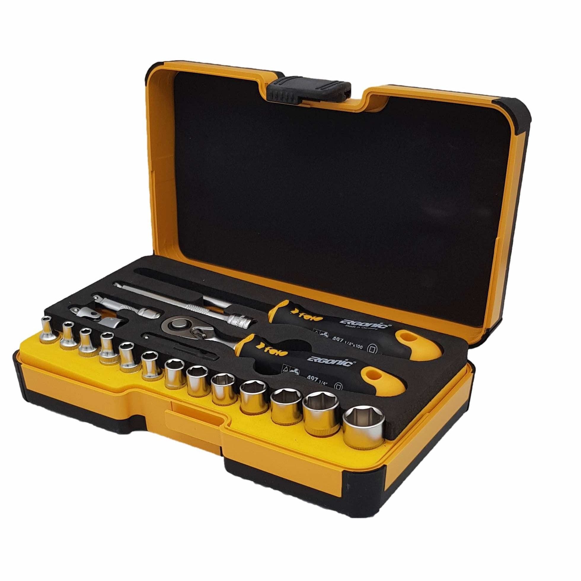 1/4" tool sets with Ergonic ratchet: perfect and reliable without compromises