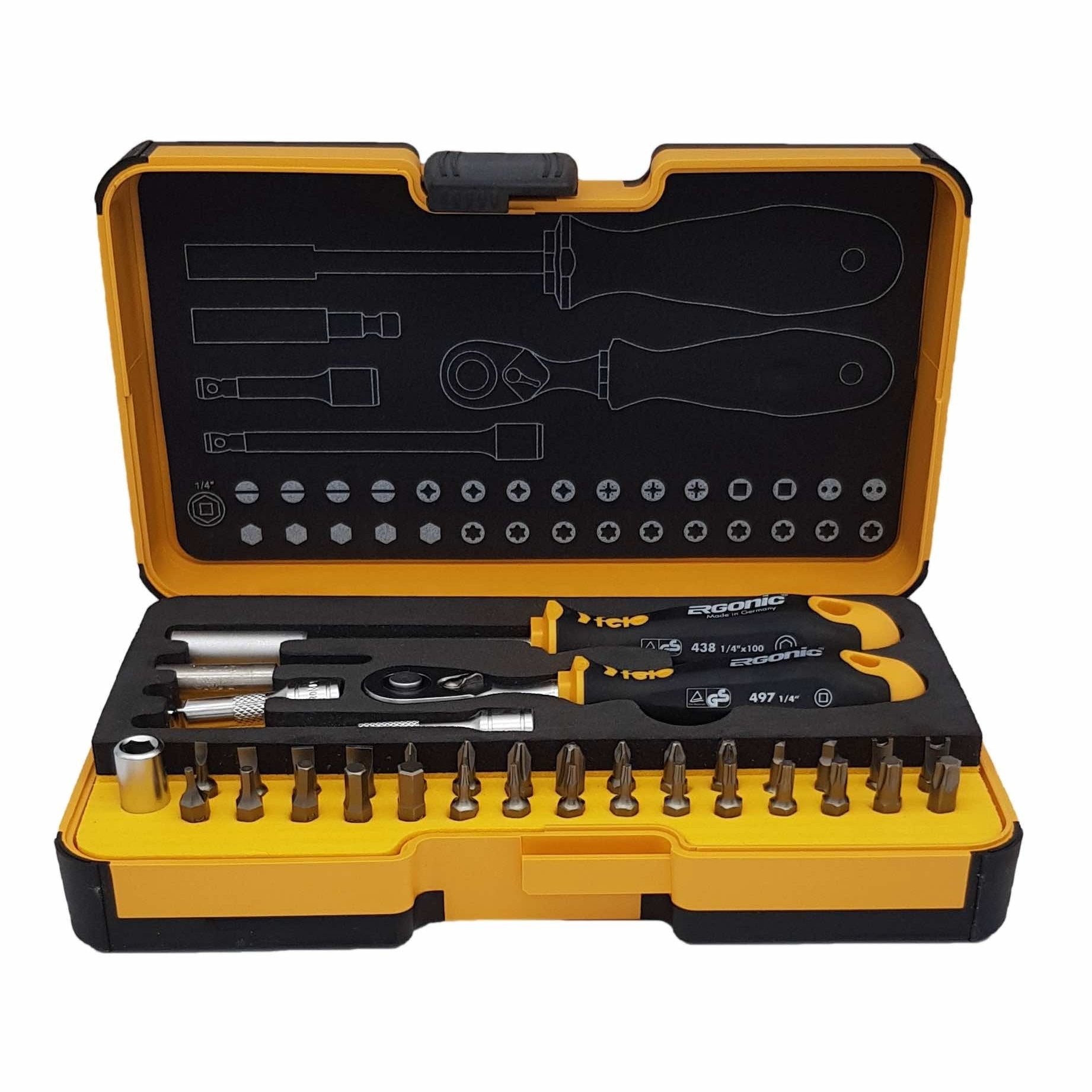 1/4" tool sets with Ergonic ratchet: perfect and reliable without compromises