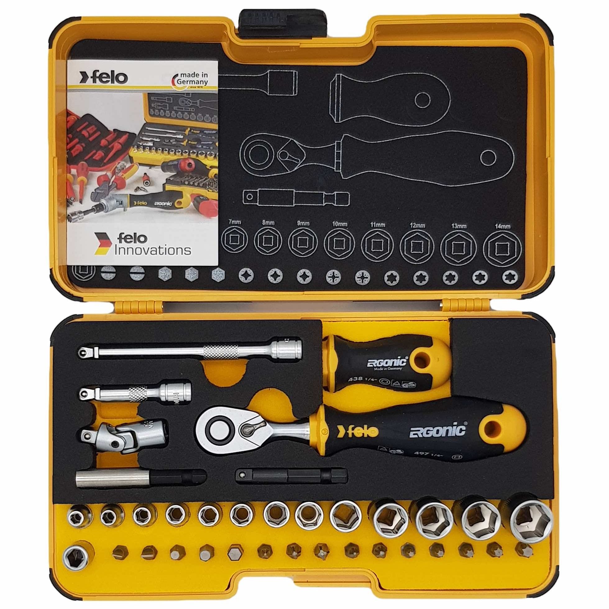 Felo 05783616 R-GO XL 36 piece Box Sockets, Bits Ergonic Ratchet, Metric
