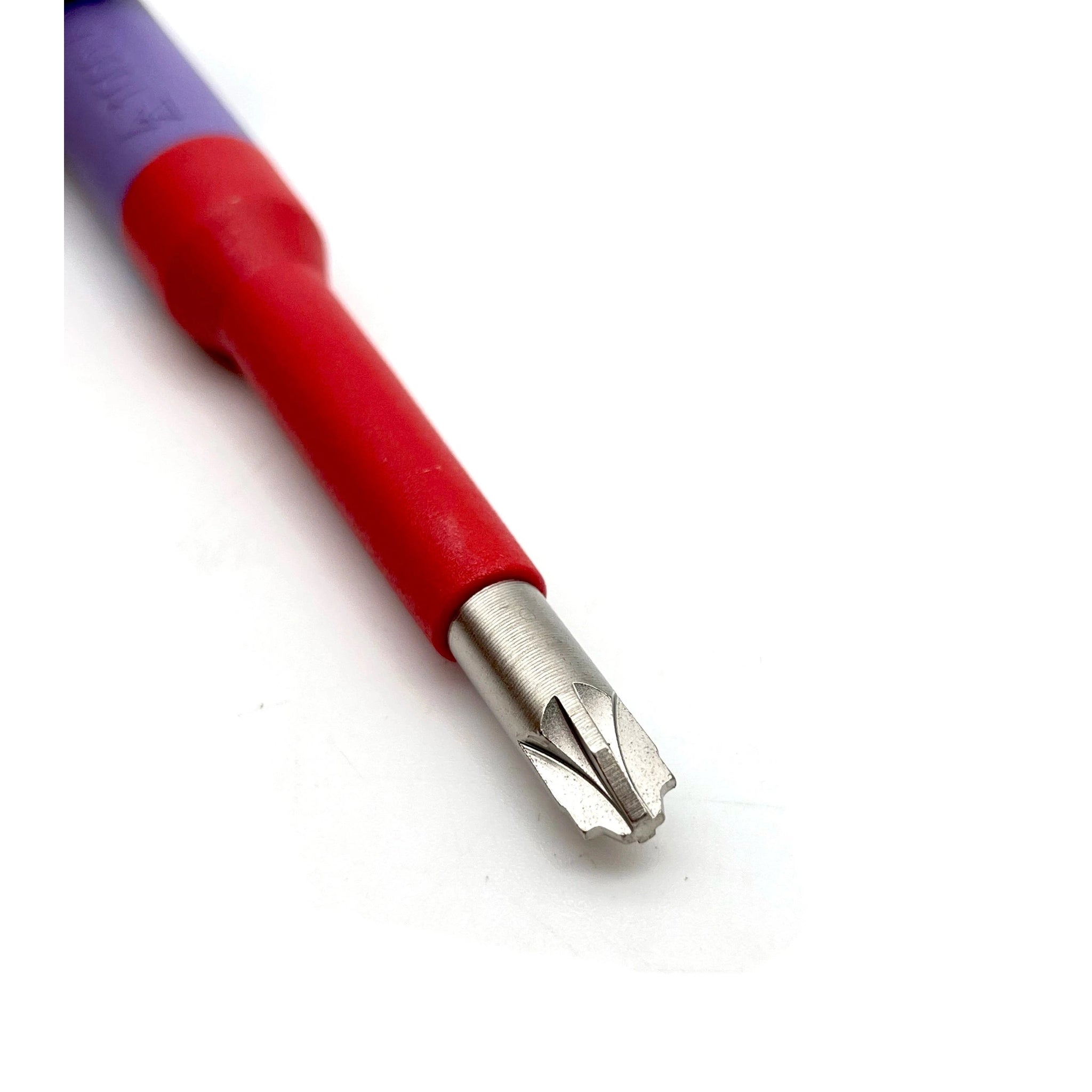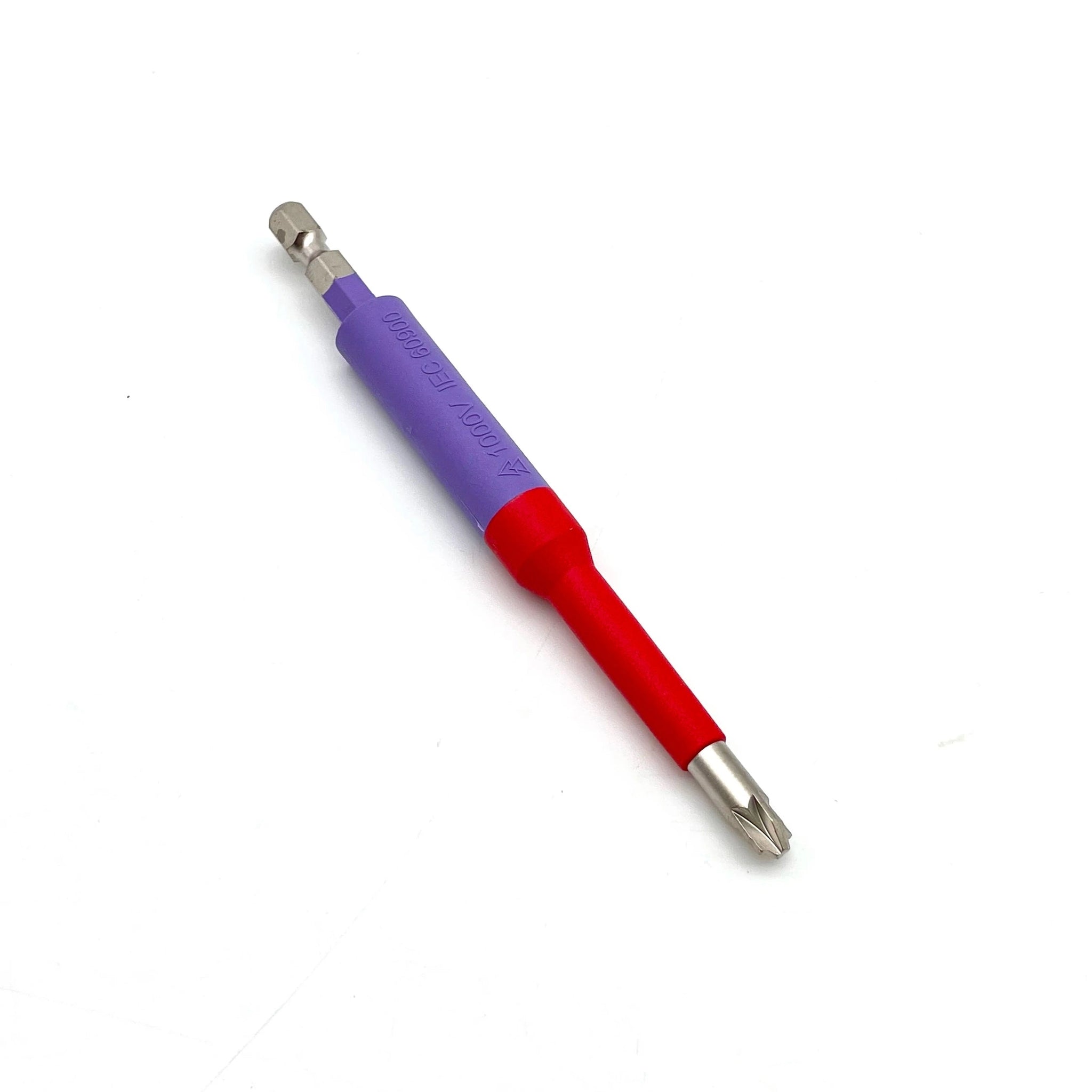 The special Felo cross bit with a combined slot +/-Z 2, 115 mm long, with a dielectric coating is designed for repair, installation and construction work using a screwdriver under a voltage of up to 1000 volts. Felo bits are made of chrome-molybdenum-vanadium steel, hardened in oil to a hardness of 60-64 HRC, which prevents chipping of the slot and extends the service life of the bit. Each individual bit is tested under a voltage of 10,000 volts to ensure safe work under voltage. Country of origin - Germany.