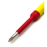 The special Felo PH 1 cross bit, 115 mm long, with a dielectric coating, is designed for repair, installation and construction work using a screwdriver under a voltage of up to 1000 volts. Felo bits are made of chrome-molybdenum-vanadium steel, hardened in oil to a hardness of 60-64 HRC, which prevents chipping of the slot and extends the service life of the bit. Each individual bit is tested under a voltage of 10,000 volts to ensure safe work under voltage. Country of origin - Germany.