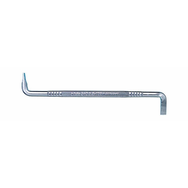 The Z-shaped slotted double-ended screwdriver SL 5.5x1.0x135 is designed for working with fasteners of section SL 5.5. The curved Z-shape of the screwdriver provides greater force on the fastener and greater torque due to the applied longer lever arm. The screwdriver is made of high-quality tool chrome-molybdenum-vanadium steel, additionally hardened in oil to give greater strength and hardness to the tool.