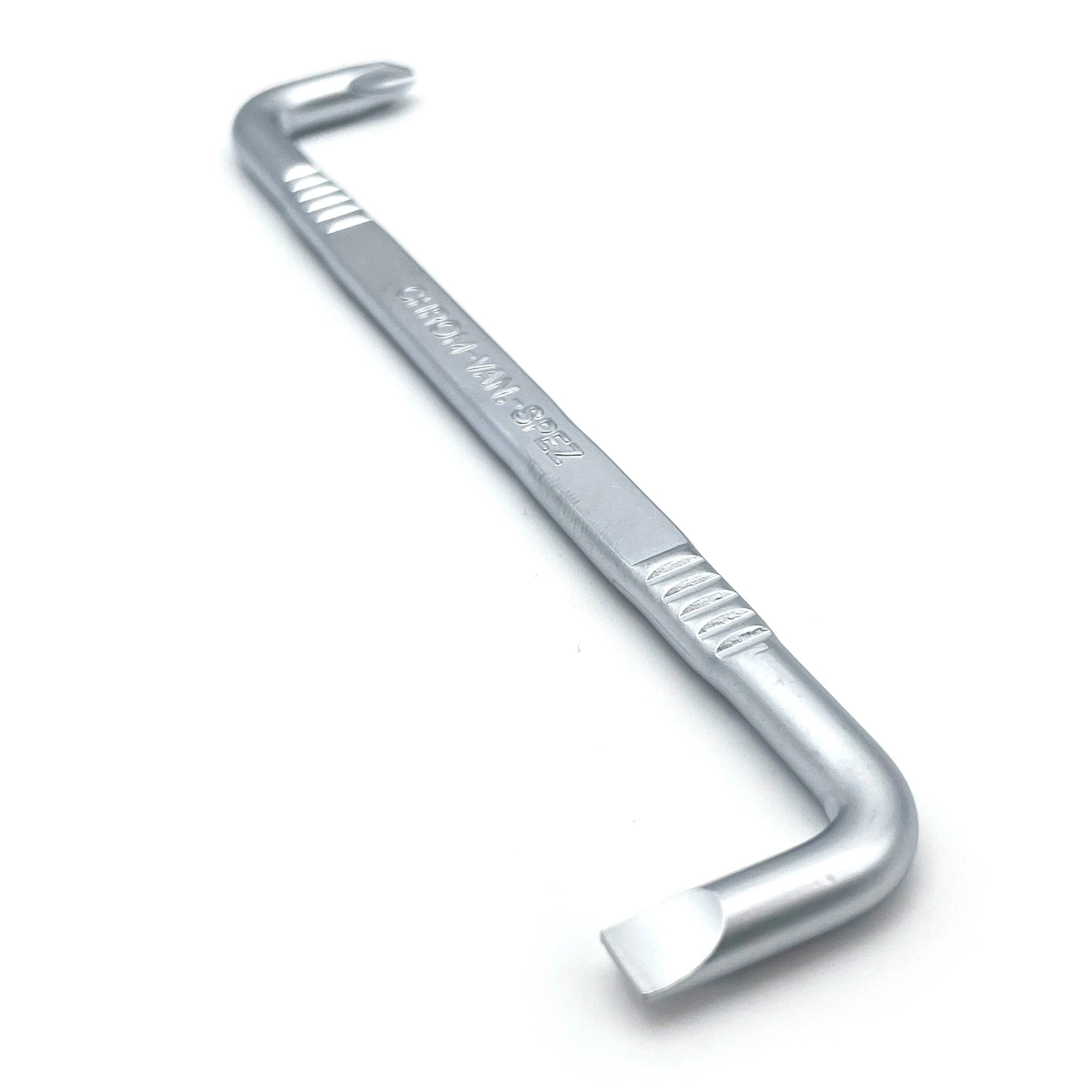 The Z-shaped slotted/cross-head double-ended screwdriver SL6.0-PH2x135 is designed for working with SL6.0 and PH2 section fasteners. The curved Z-shape of the screwdriver provides greater force on the fastener and greater torque due to the included longer lever arm. The screwdriver is made of high-quality tool chrome-molybdenum-vanadium steel, additionally hardened in oil to give greater strength and hardness to the tool.