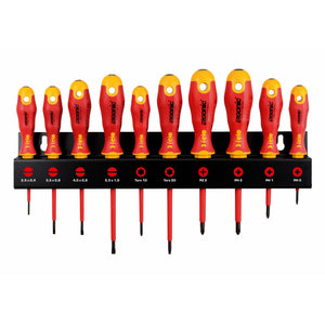 Felo 41491093 Set of screwdrivers dielectric SL/PZ/PH/Tx Ergonic on a steel stand, 10 pcs