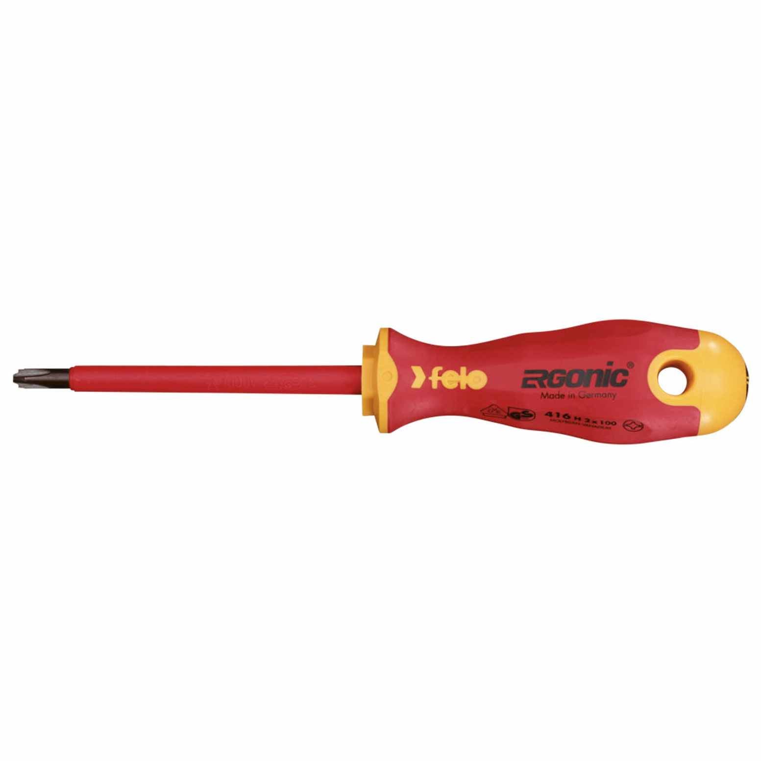 Felo 41620390 VDE Insulated Phillips-Slotted Plus-Minus #2 Ergonic Screwdriver, 100 mm