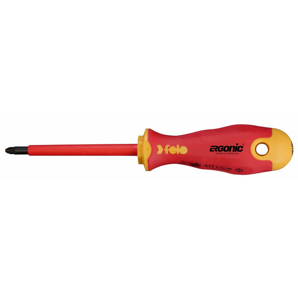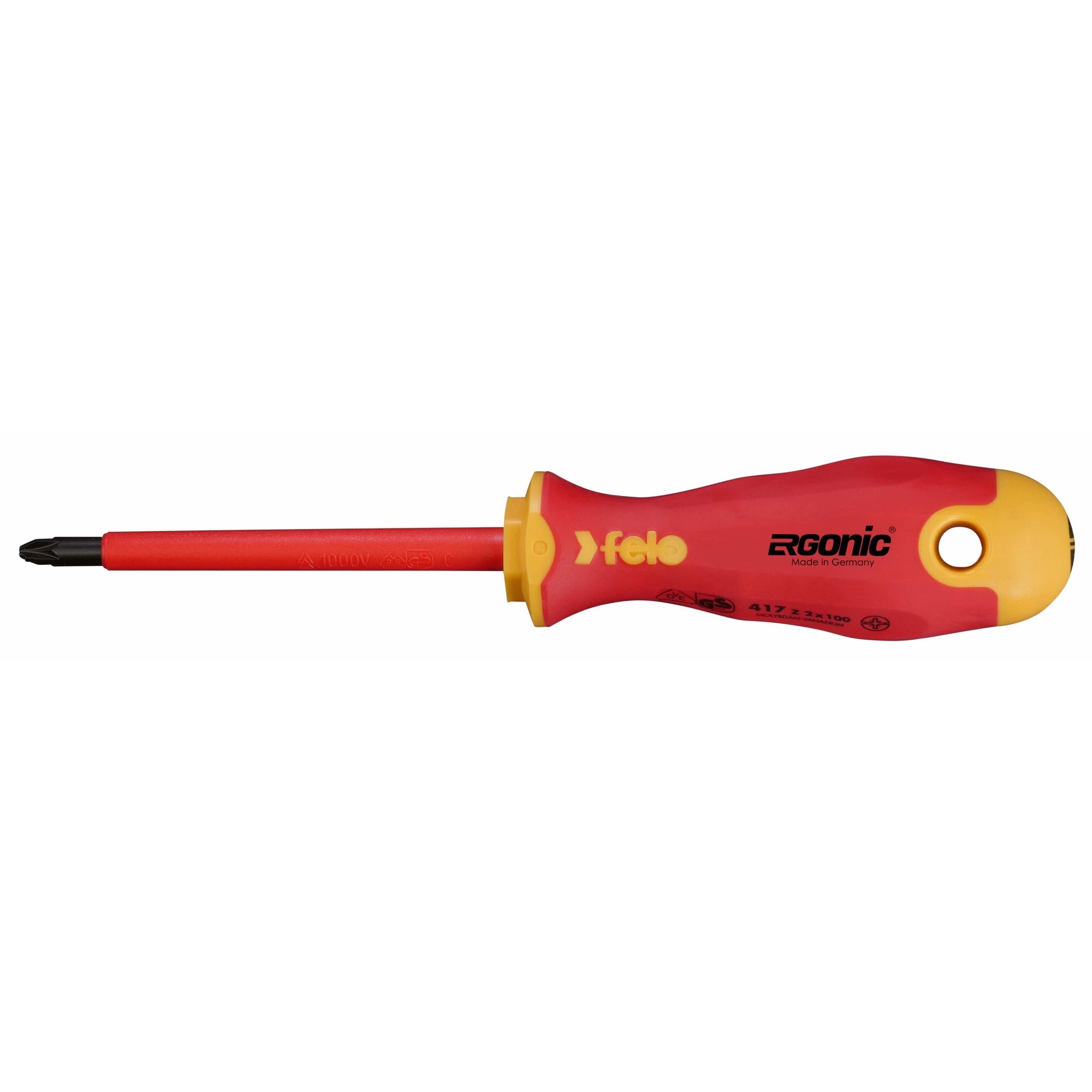 Felo 41720390 VDE Insulated Pozidriv-Slotted Plus-Minus #2 Ergonic Screwdriver, 100 mm