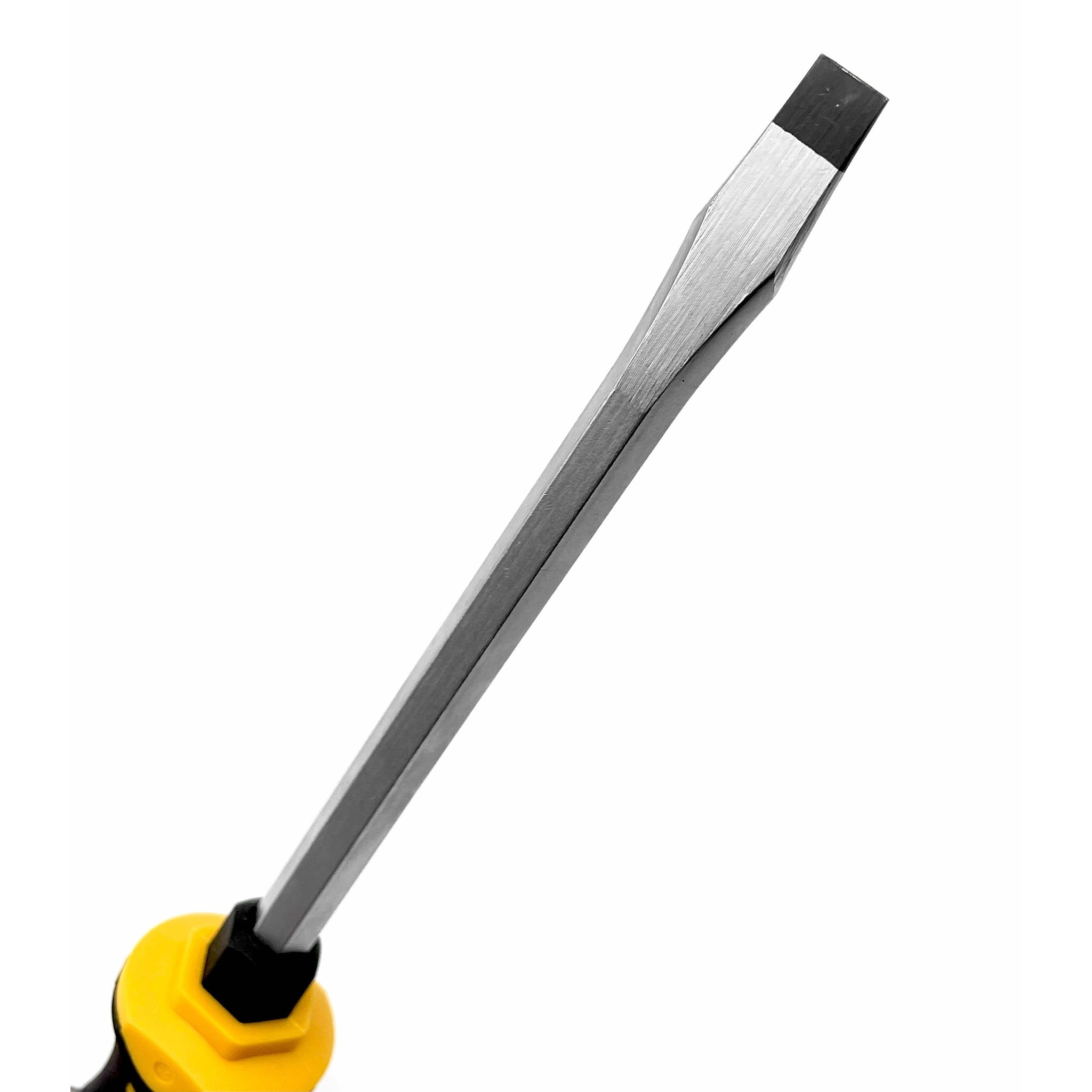The Ergonic SL 8.0 flat-head impact screwdriver is designed for assembly and disassembly work with SL 8.0 type fasteners. The impact screwdriver is used when it is difficult to unscrew fasteners, when it is impossible to cope with conventional tools. The impact-resistant rod runs along the entire length of the screwdriver and is made of hardened high-quality tool steel (CrMoV), additionally hardened in oil, the wear resistance and strength of which exceeds the technical requirements of European DIN and ISO standards. The rod has a welded hex nut to add additional force to the fastener when unscrewing / tightening screws.