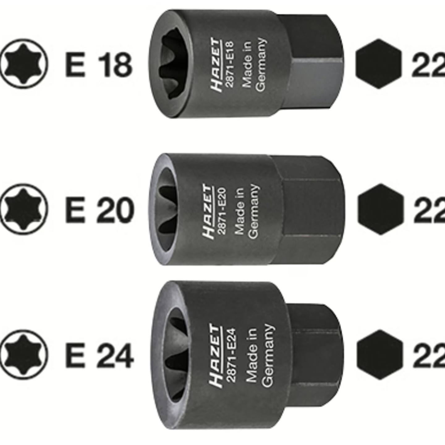 Size E20 ∙ 22 mm outside hexagon ∙ Outside TORX® profile