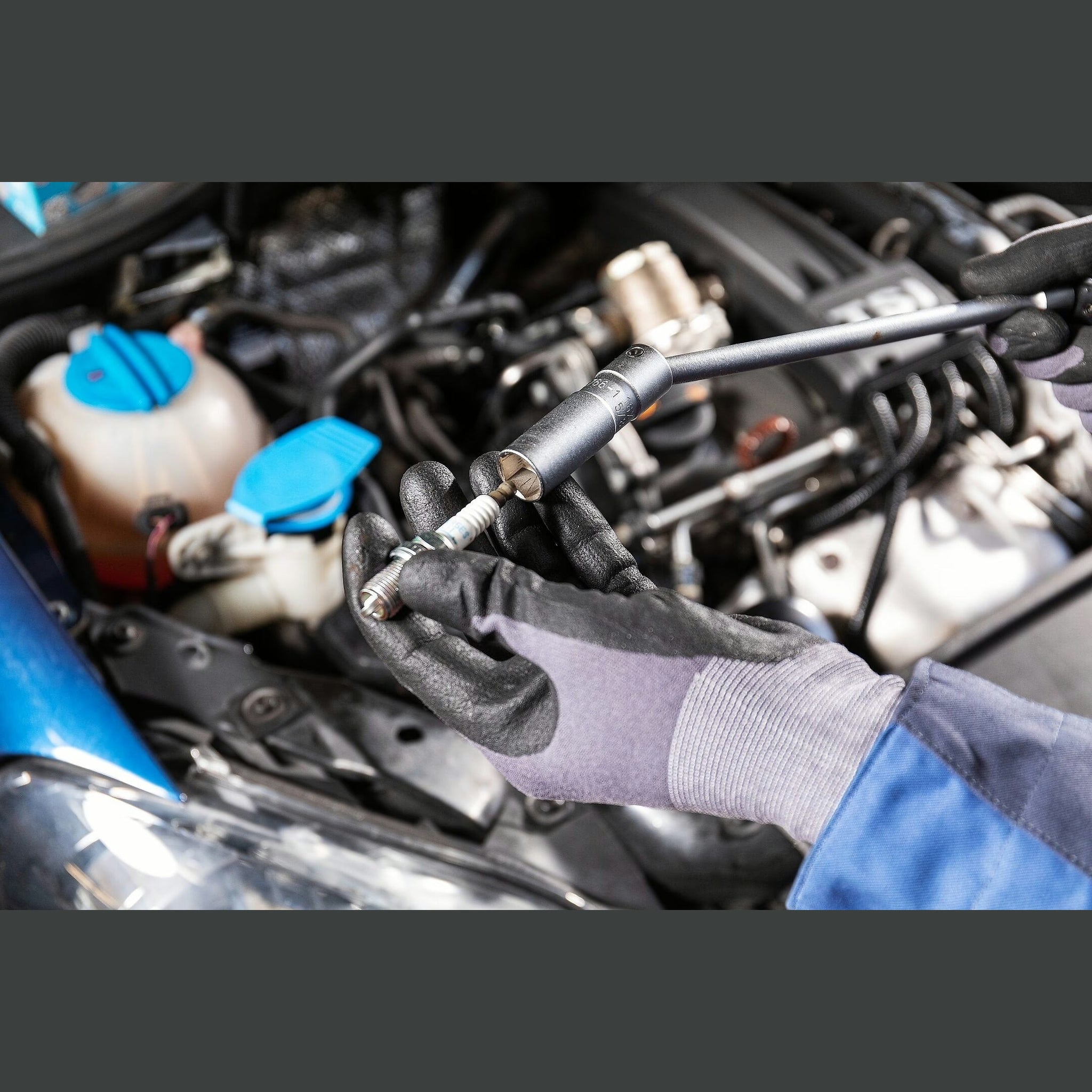 Spark plug change (16 mm or 5⁄8″) - With fixing clamp for a firm hold of the spark plugs
