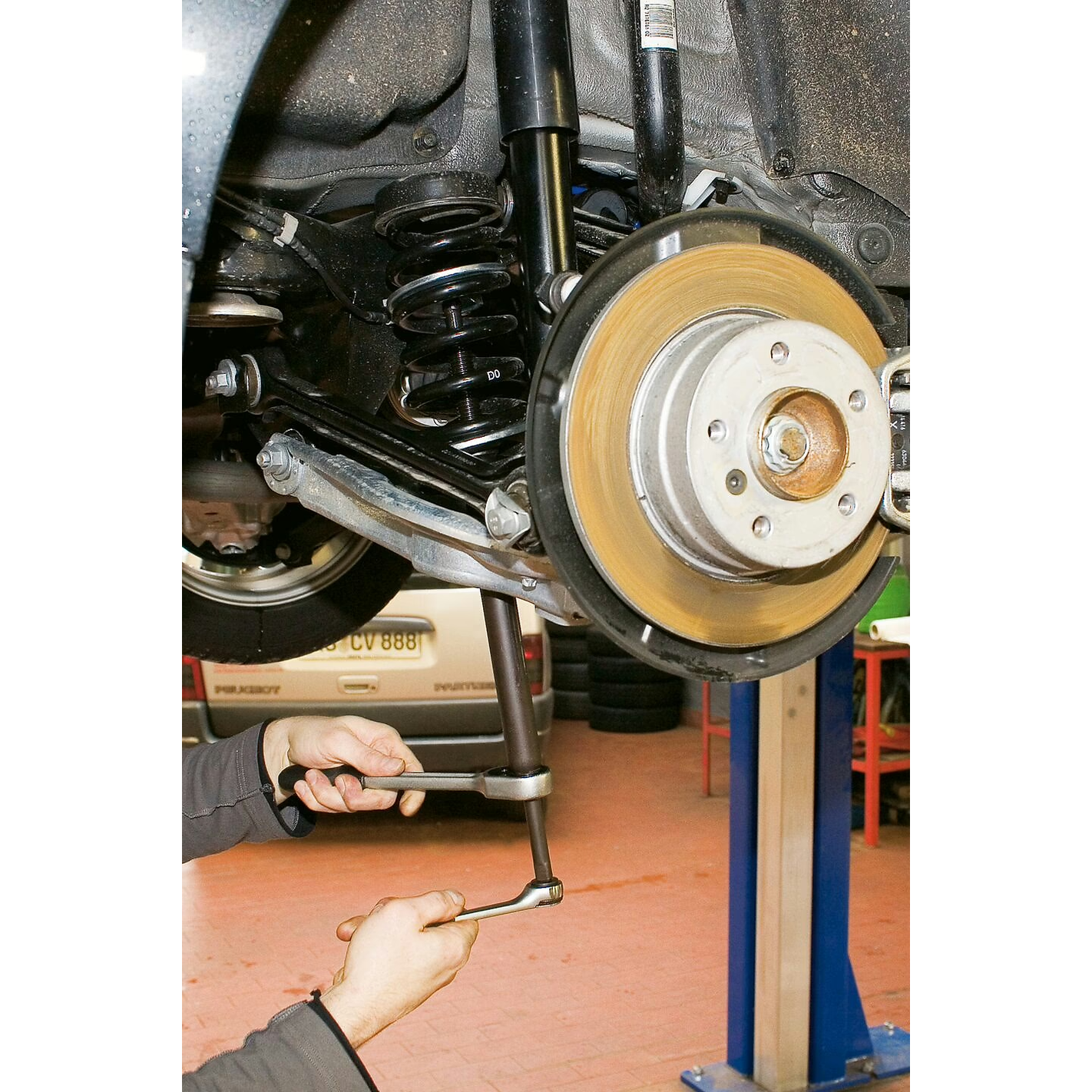 Removal and installation of the coil spring on the rear axle - Inside spring vice set ∙ Contents: