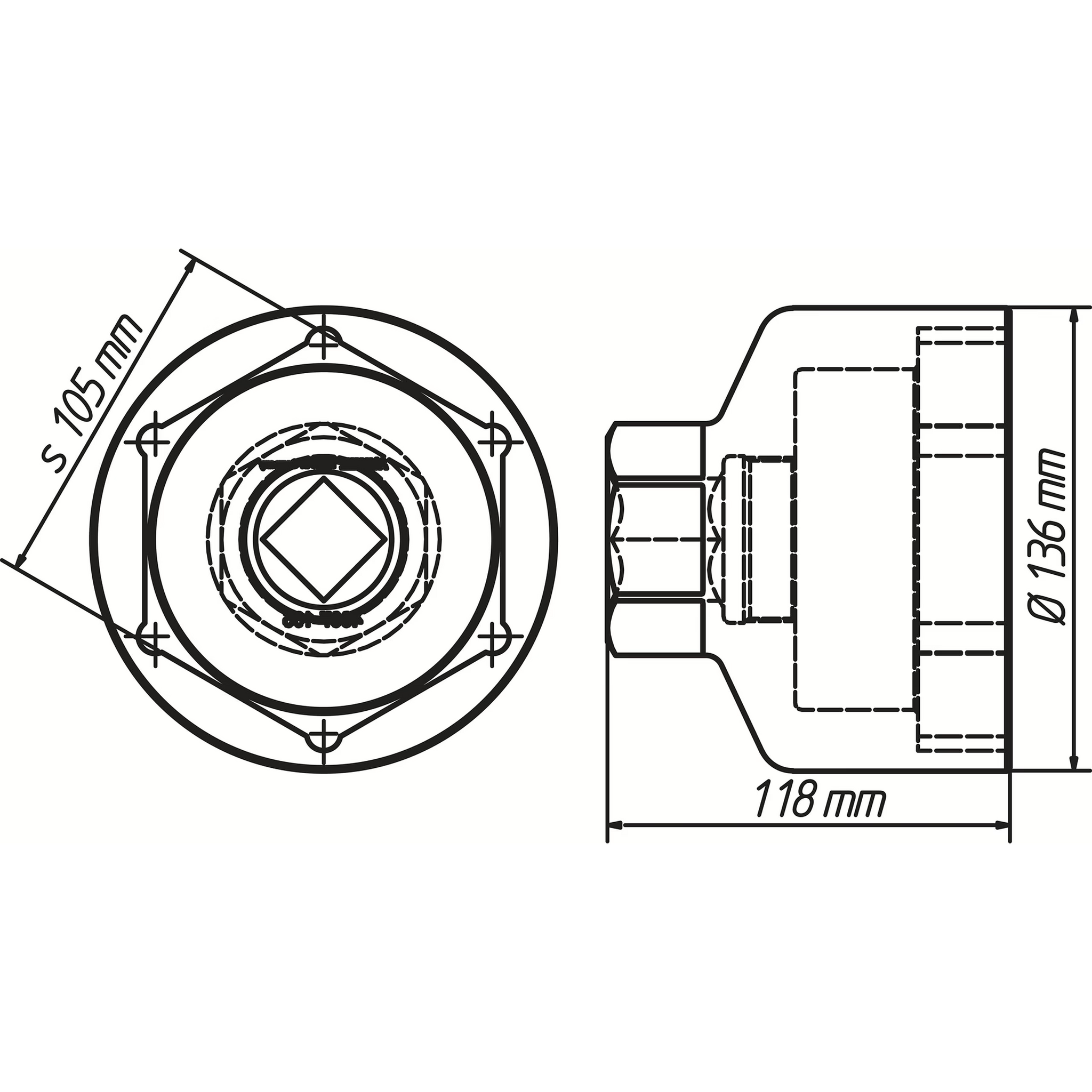 2-pieces ∙ Size 105 mm ∙ 1 inch square ∙ hollow ∙ Outside hexagon profile