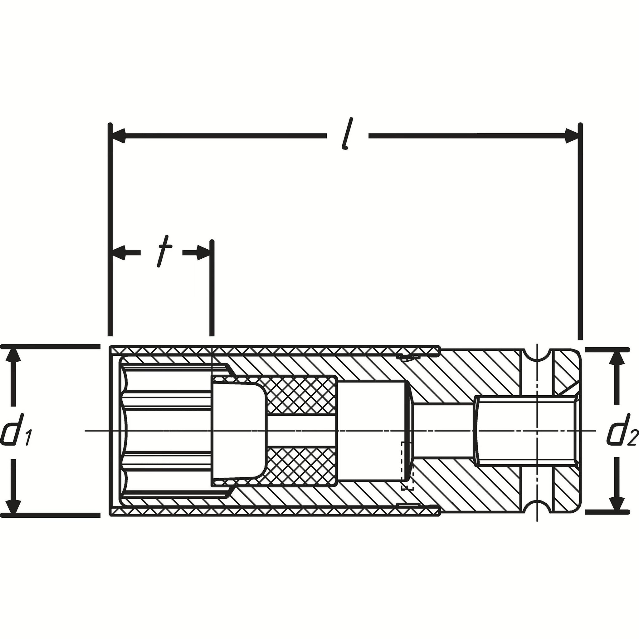 Size 15 mm ∙ 1/2 inch square ∙ hollow ∙ Outside hexagon traction profile