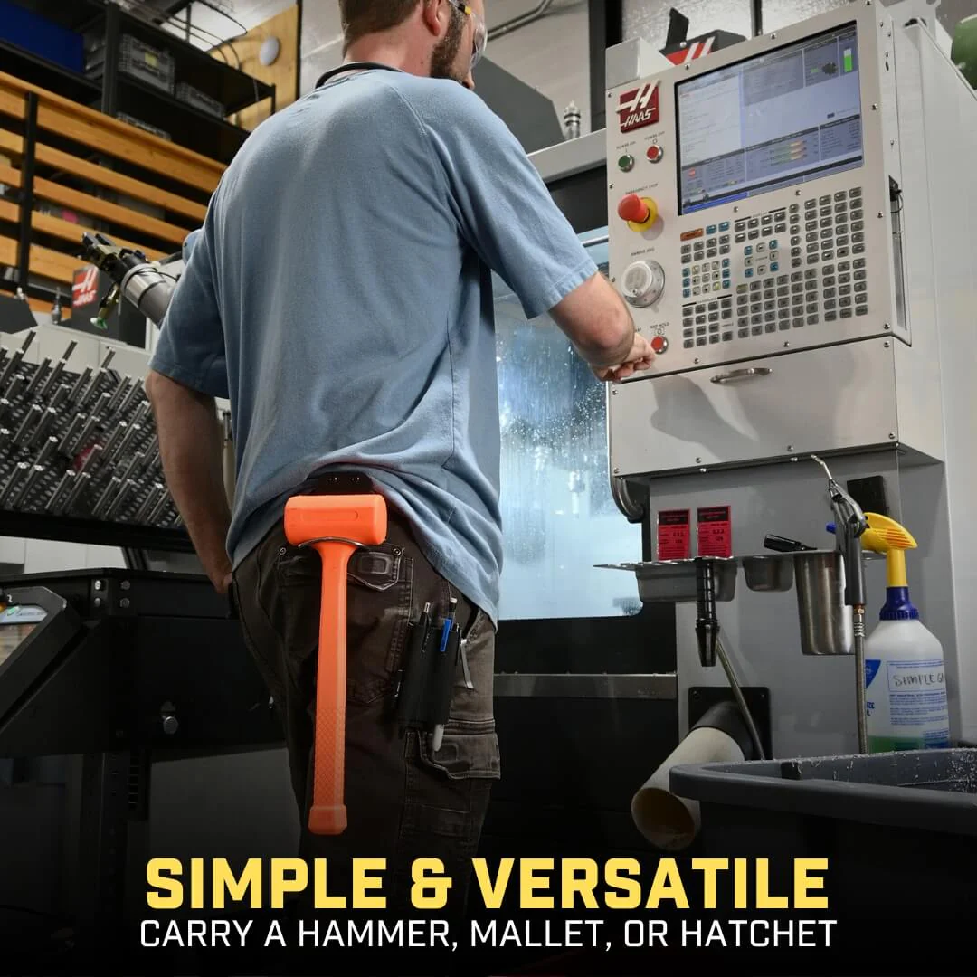 - Great for when you don’t want a full tool belt. It's especially useful for tasks where only a hammer and and some hardware is required, ensuring your hammer is close at hand without the need for a larger setup.