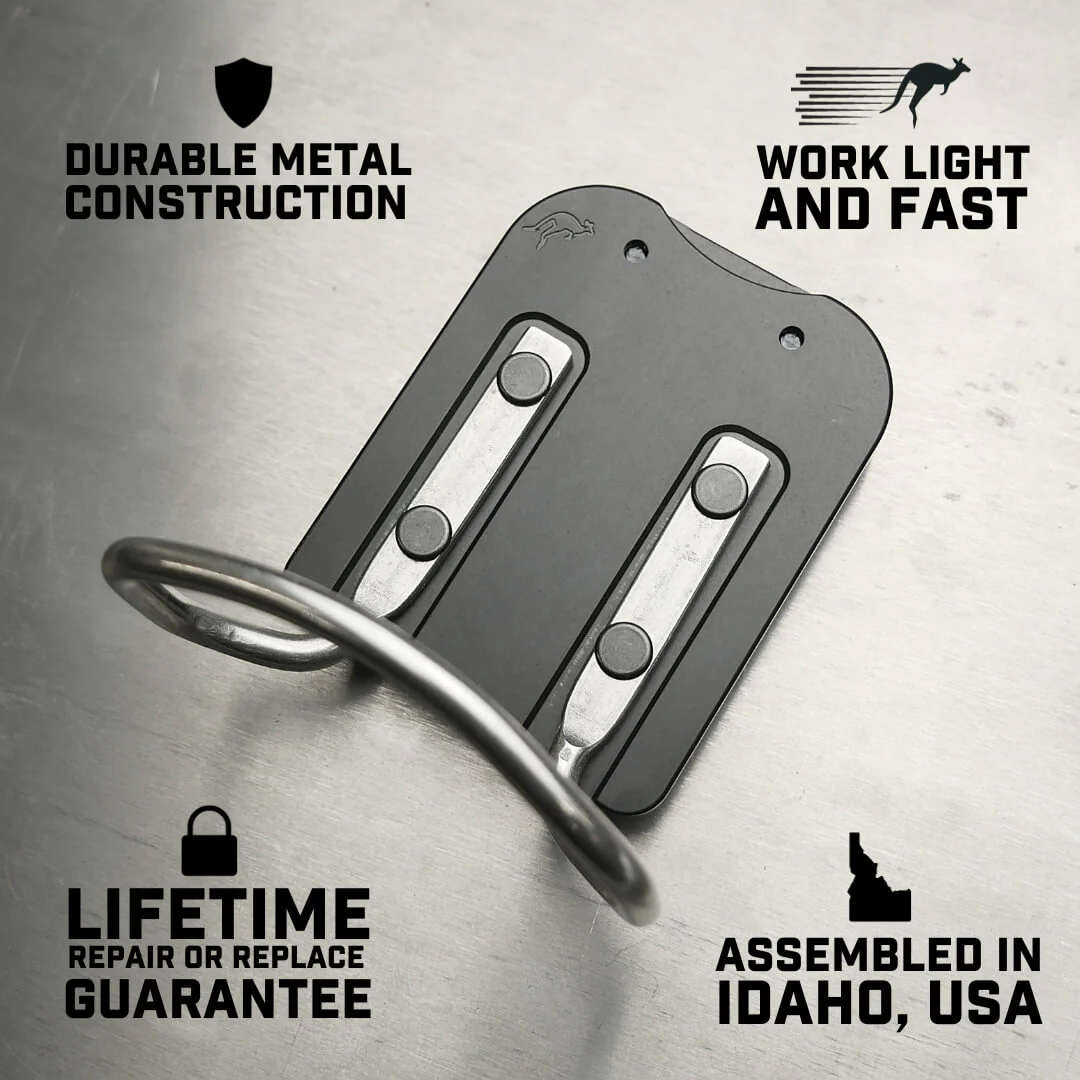 The HammerMaster Pro offers a refreshing solution with its minimalist, low-profile design. Unlike other hammer loops, it ensures your hammer is comfortably positioned and easily accessible where you want it on your belt. Perfectly designed to hold hammers, mallets, and hatchets, it clips securely onto belts, pockets, or tool pouches without any discomfort. With the HammerMaster Pro, you get a durable, affordable, and versatile hammer loop that has a pro look and feel.
