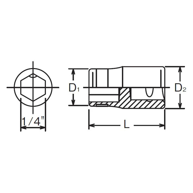 Koken 2137 - 1/4" Sq Drive Adaptor For 1/4H Bit 22.5mm Length