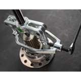 The 2-jaw bearing puller "Cobra" with a side clamp is used for pulling particularly stuck ball bearings, bearing rings, and workpieces. With this, it is possible to loosen any component that is mounted on a shaft and is freely accessible from the outside. Thanks to the clamp, the contact pressure of the puller jaws is increased manifold. When the clamp is tightened, the sharp claws of the puller jaws grip underneath the part to be pulled off and loosen it even before the actual pulling process.