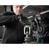 The handy 2-jaw puller with force-amplifying and self-centering jaws is used for the sensitive removal of small bearings, gears, and discs in tight, hard-to-reach spaces. The compact and space-saving design of the puller, with narrow jaws that widen towards the claw, is particularly suitable for electric motors. The freely movable pin on the T-handle ensures comfortable one-handed tightening of the spindle in the tightest of spaces.