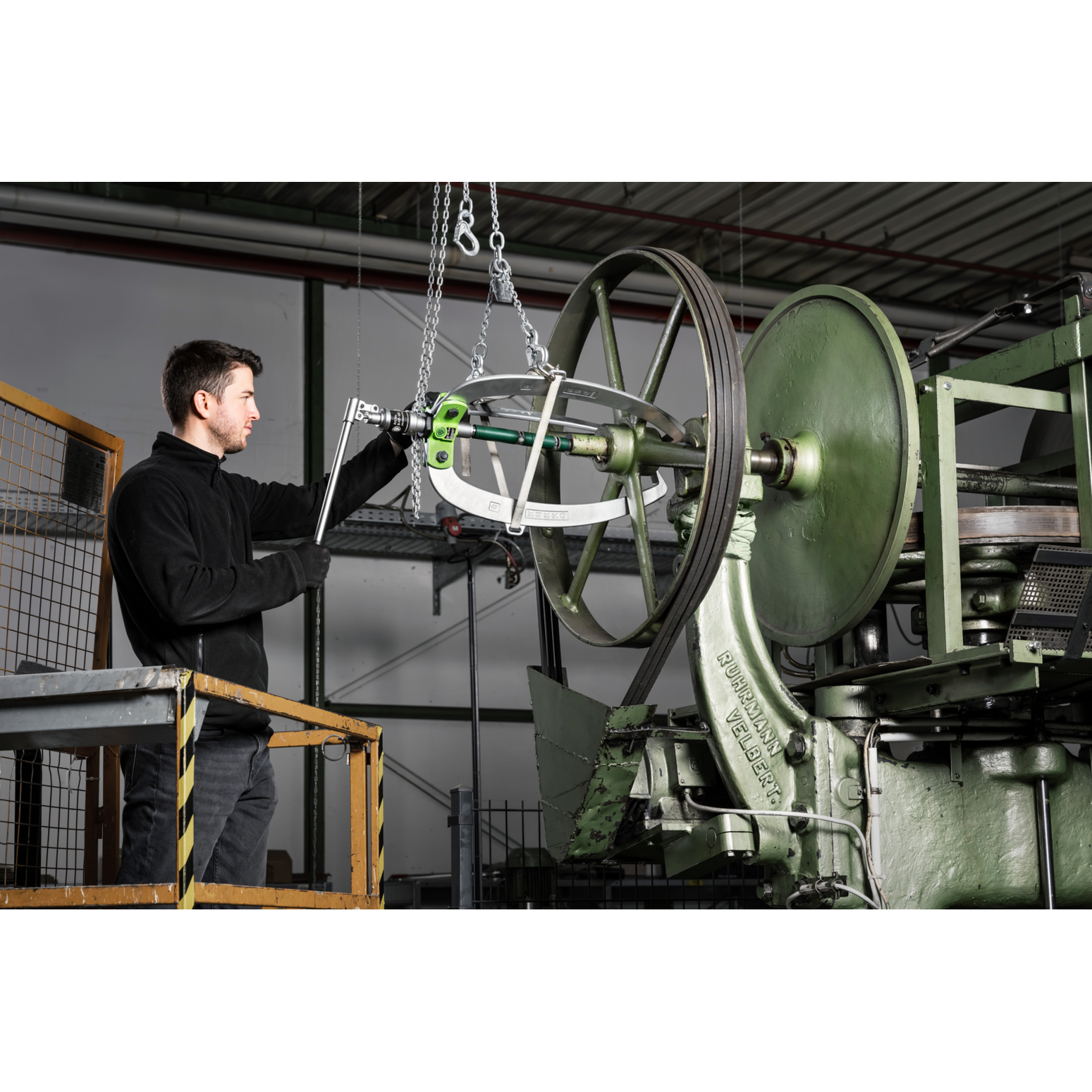 The compact 3-jaw industrial puller with force-amplifying and self-centering jaws is used for pulling bearings, gears, and discs in all common sizes for crafts, workshops, and industry. It allows for the loosening of any component that sits on a shaft and is freely accessible from the outside. When the spindle pressure is built up, the part to be pulled is increasingly gripped by the interconnected jaws. The 3-jaw design ensures an even load distribution, providing a particularly secure hold on the part to be removed.