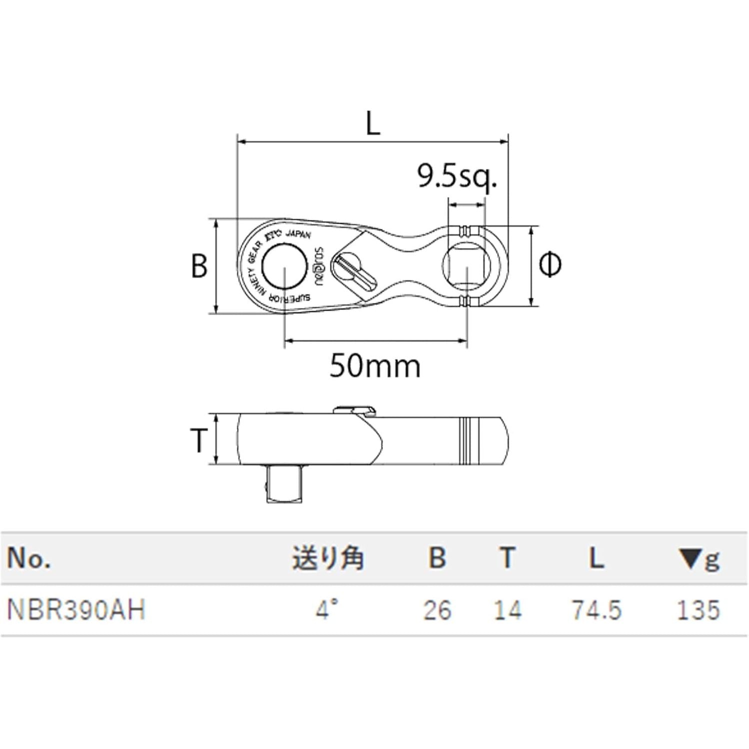 Nepros NBR390AH 3/8" 90-Tooth Ratchet, Stubby