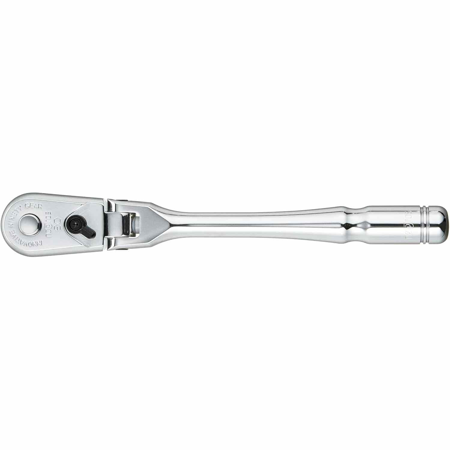 A compact ratchet that showcases Japanese quality and craftsmanship at it’s best. The 90-tooth ratchet mechanism has an extremely smooth action with a 7-step claw for unrivaled strength. Perfectly balanced with an innovative hollow handle design that is finished in beautiful 5GQ mirror chrome.