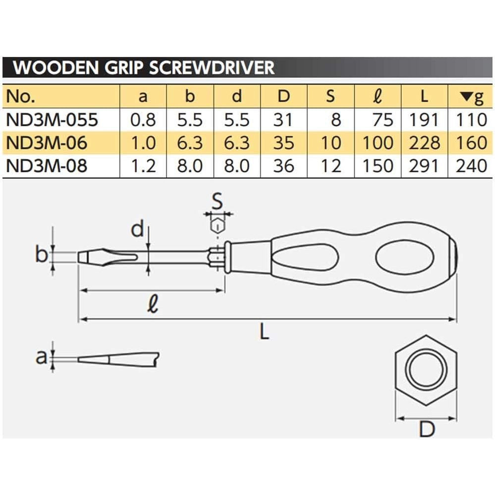 Nepros ND3M Wooden Screwdrivers, Slotted