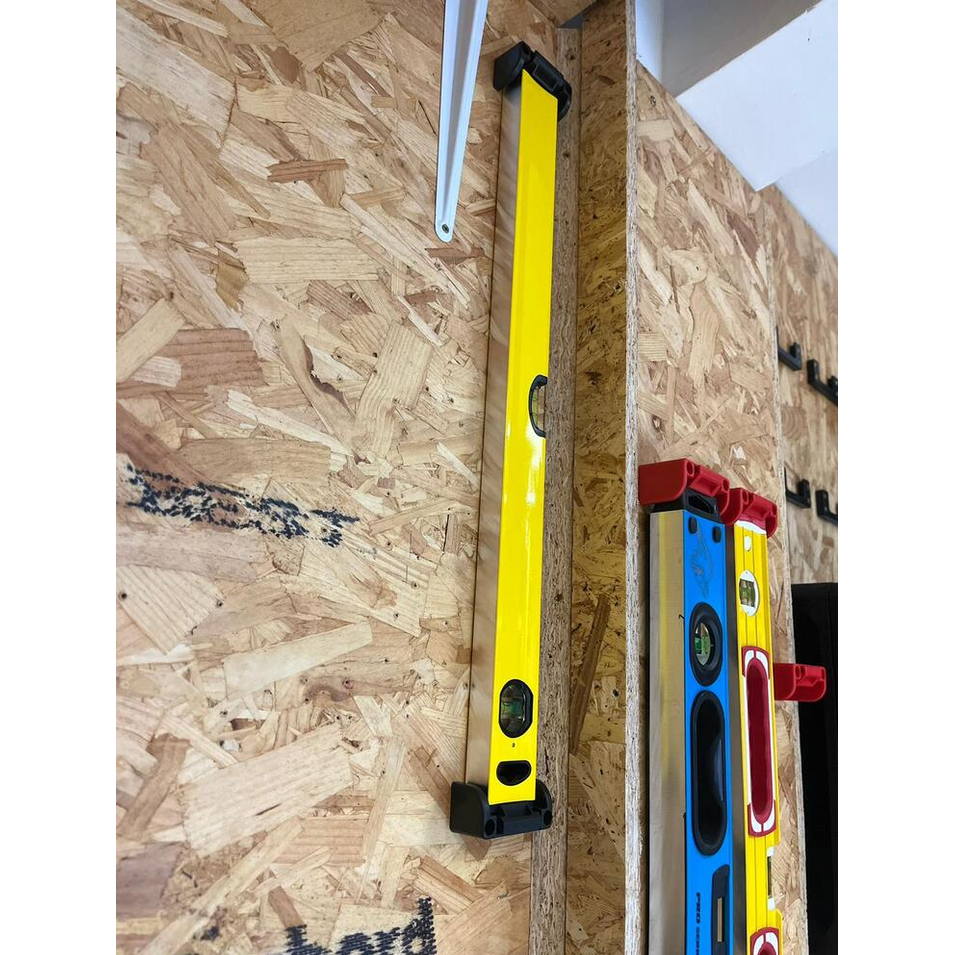 StealthMounts Level Mounts Slim will fit levels with a maximum 56mm (2.20 inches) and a maximum depth of 23mm (0.90 inches). This allows you to keep your levels organised and easily accessible within your workshop. The universal Level Mounts Slim can be mounted to any surface with screws without allowing excessive level movement. Each pack contains 2 sets of Universal Level Mounts Slim. StealthMounts Level Mounts Slim can be held vertically or horizontally. Made in Great Britain our Level Mounts Slim are made with extremely durable injection moulded ABS plastic with countersunk screw holes to allow for firm mounting.