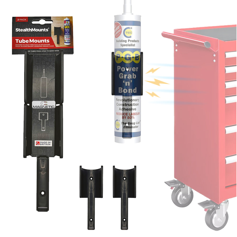 Made in Great Britain from extremely durable injection-moulded ABS plastic, the StealthMounts Magnetic Tube Holder is built to withstand the rigours of workshop and van environments. Designed for convenience, strength, and reliability, it’s the perfect solution for keeping your workspace tidy, efficient, and ready for any job.