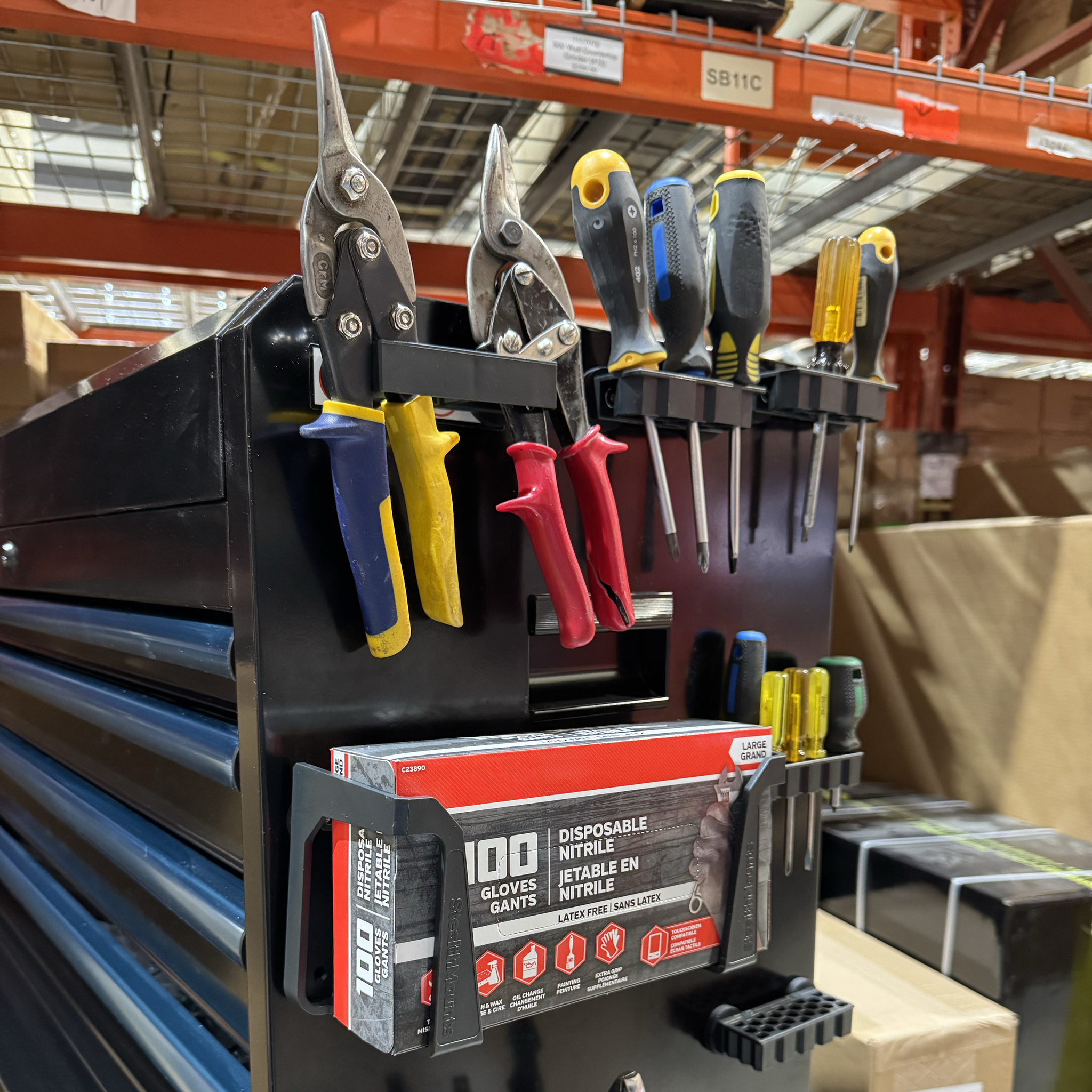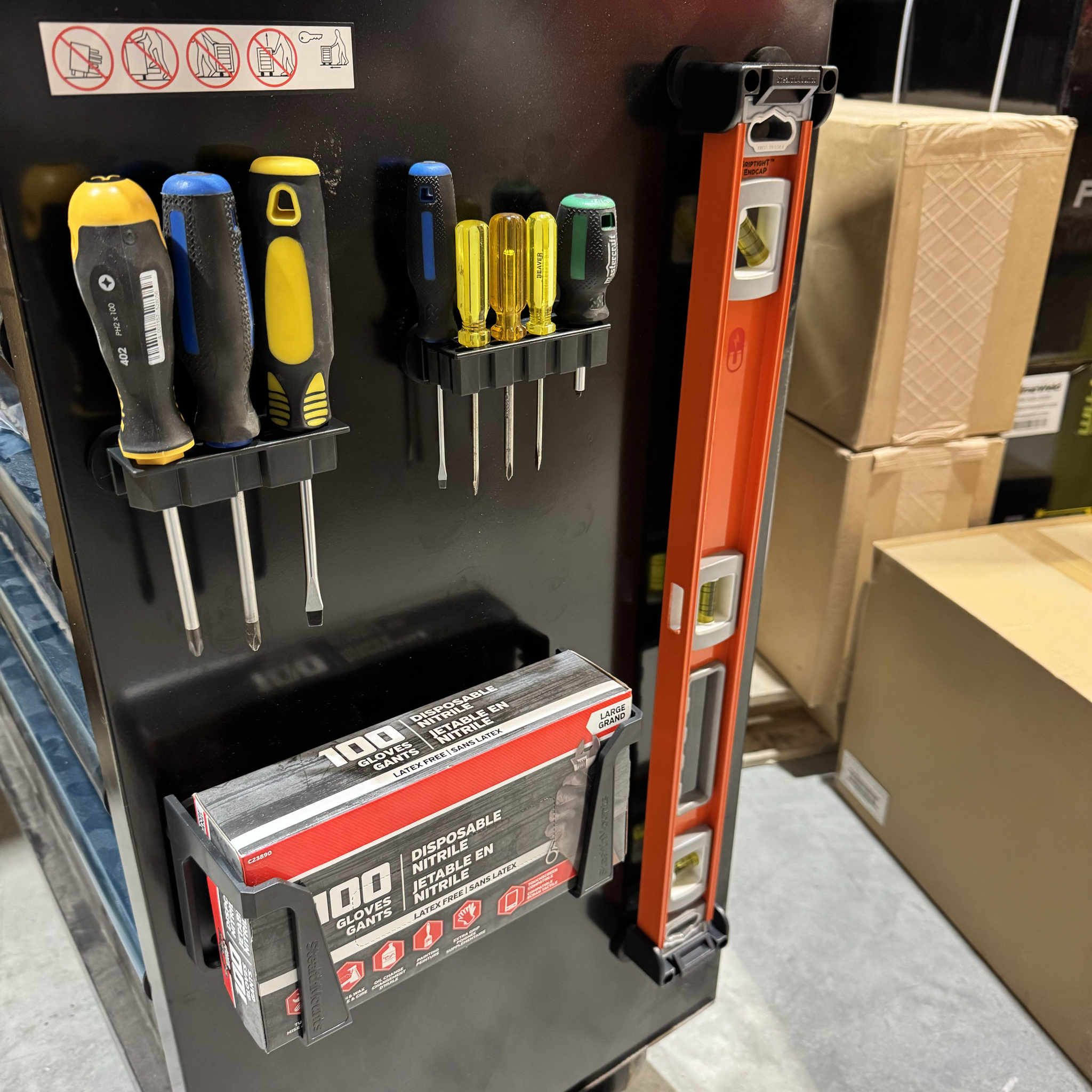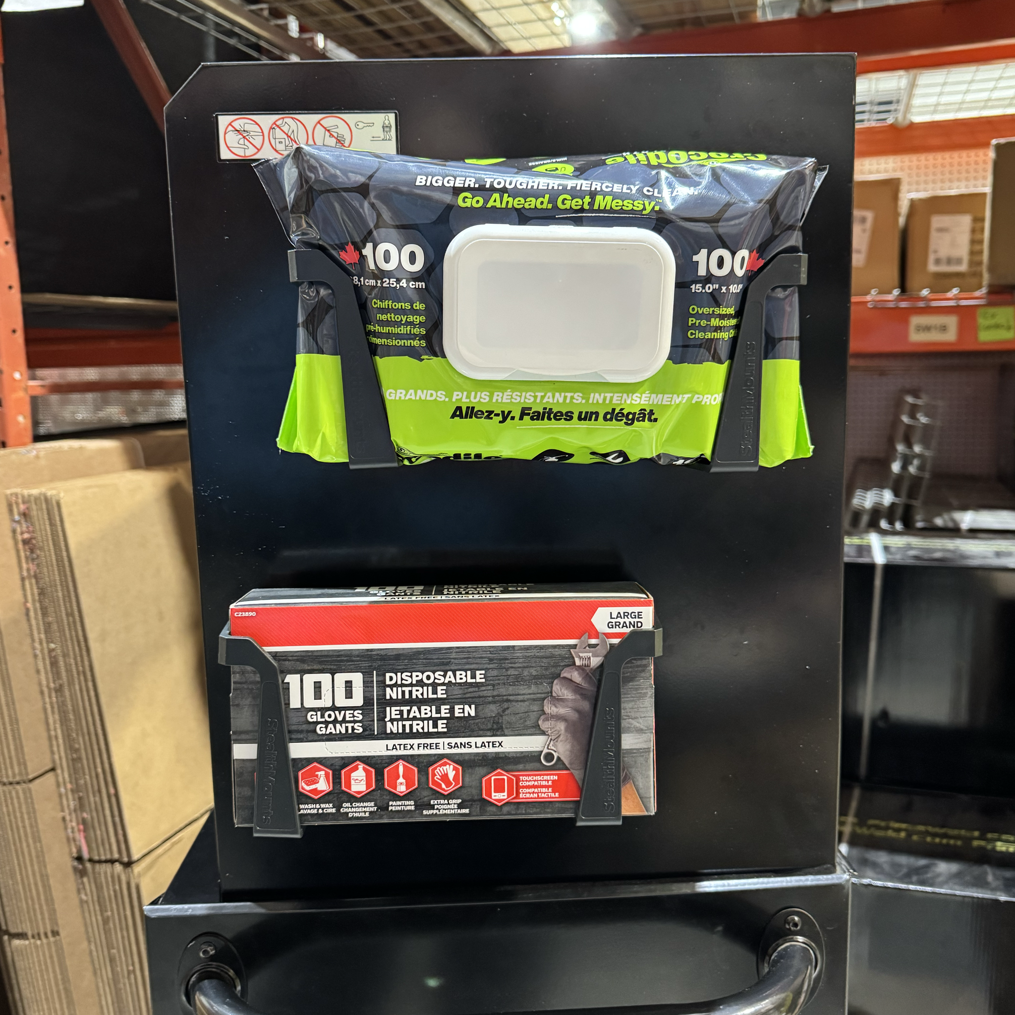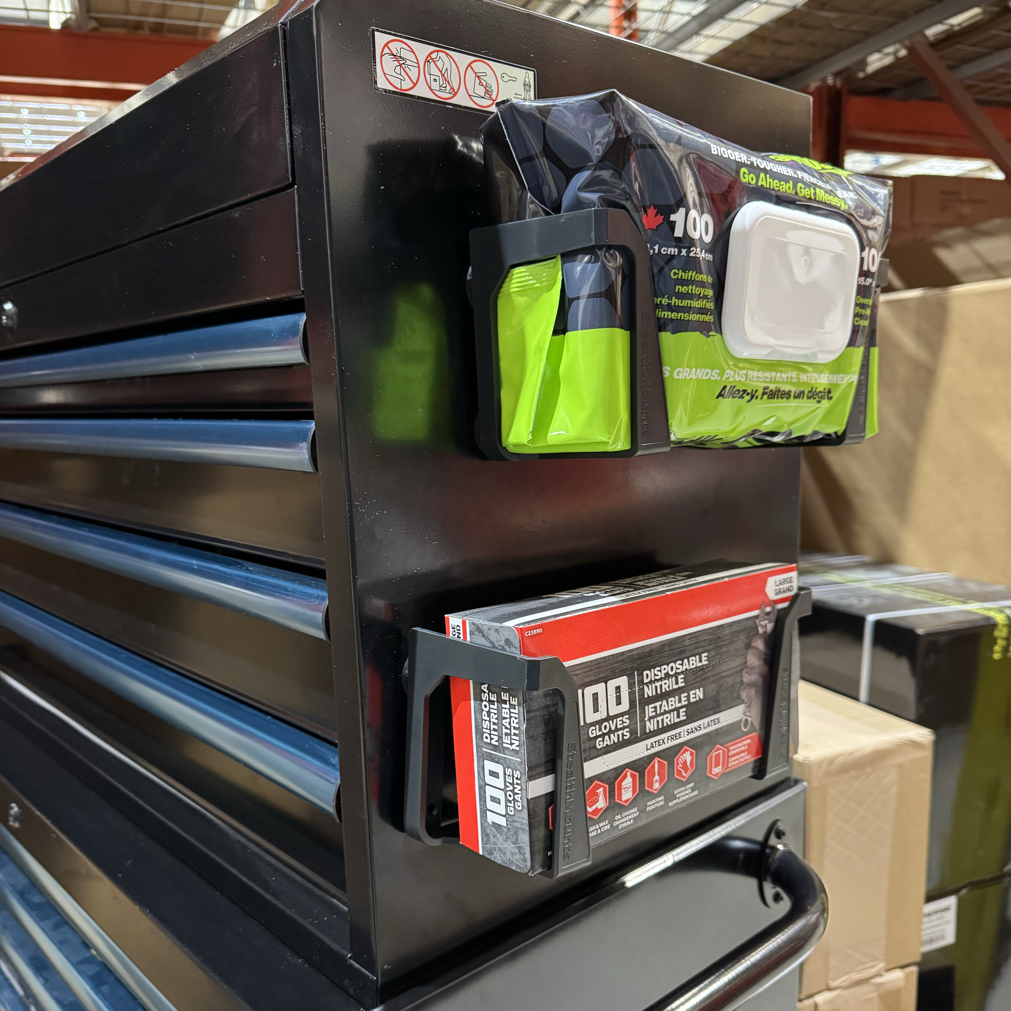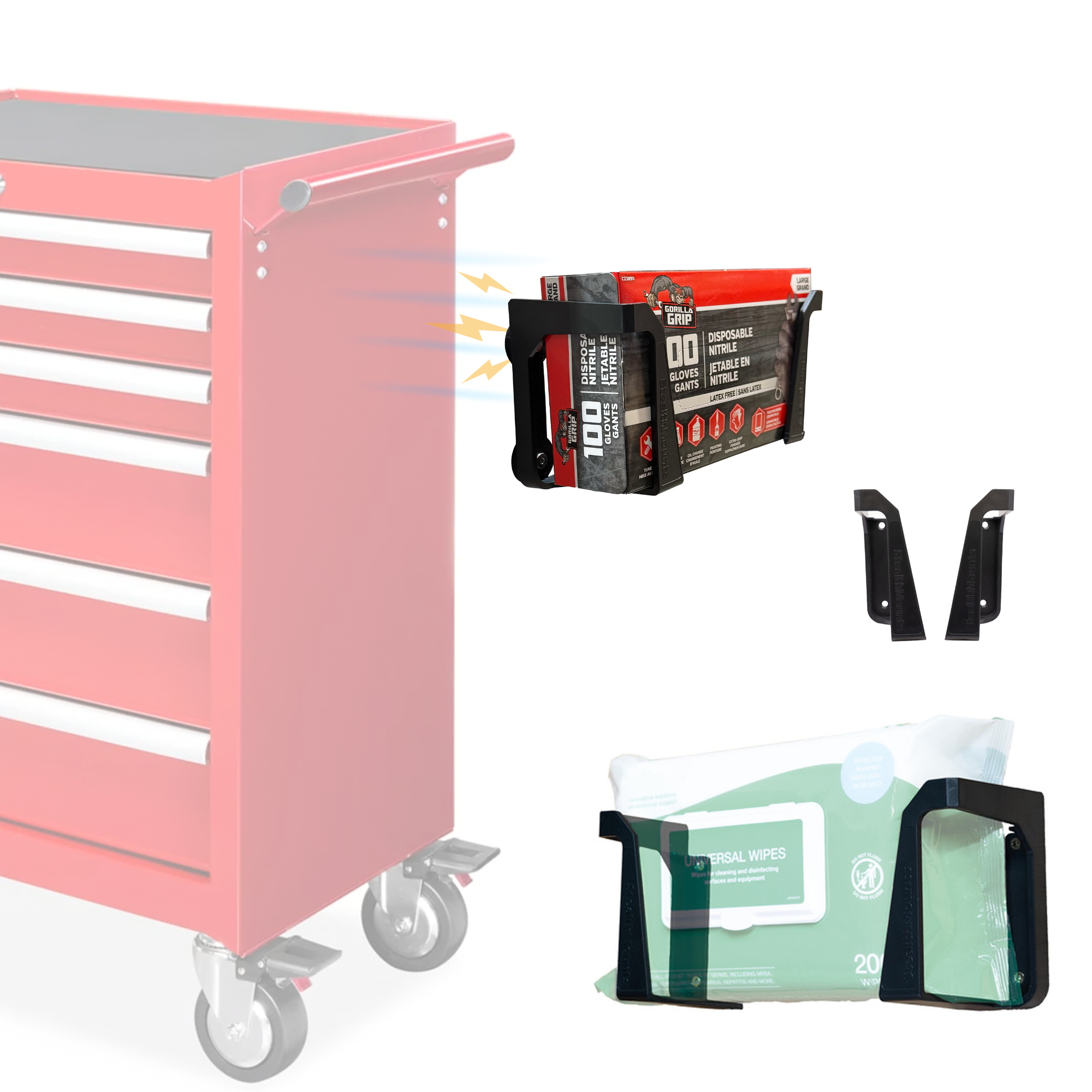 StealthMounts Magnetic Wipe & Glove Holders are universal holders designed to fit boxes up to 80mm (3 ⁵/₃₂") deep. Compatible with various brands, these holders keep wipes or gloves conveniently within reach on any metal surface in your workshop. Their strong, rubber-coated magnets hold the wipes securely without damaging surfaces. Each pack includes 1 set of Magnetic Wipe & Glove Holders. Proudly made in Great Britain, they are crafted from tough, injection-molded ABS plastic.