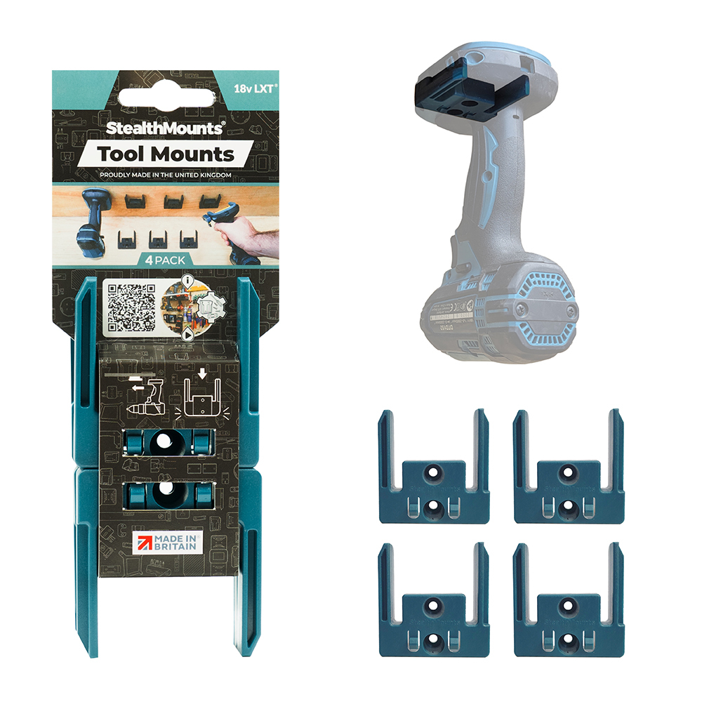 StealthMounts Tool Mounts for Makita 18v LXT cordless tools keep your tools organised and right where you need them. Tools are held securely using our Snap-Fit system, simply slide your tool onto the holder until you hear a click. Made in Great Britain, our Makita 18v LXT Tool Mounts are made using extremely durable injection moulded ABS plastic with countersunk screw holes to allow for secure mounting. Ideal for keeping track of your tools and staying organised. They can be mounted at any distance from one another and in small spaces for maximum workshop efficiency. Rated for use in your workshop and under shelves. They can be used in tool trailers or in your work vehicles with due care. Easily release your tool by pulling it off the mount. Available to match your colour-coded Makita platform.