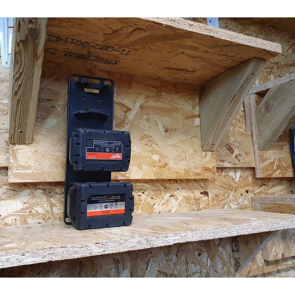 StealthMounts Milwaukee Battery Boards can securely store up to three batteries. Perfect for mounting to the wall, under a shelf or clipping to your bag. Batteries can be mounted from either direction and won't fall out when being transported. Excellent for use in Utes, vans and workshops. The board has four countersunk holes and two blind holes opening up more mounting and storage options. Attach a Bench Belt to the rear of your Battery Board and you have instant storage and transportation for your impact driver or tape measure. Attach Mounting Feet and clip to your Packout System. The possibilities are endless.