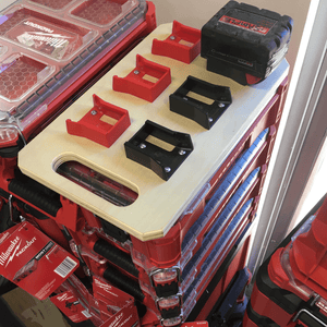 The Packout Board can be suited for: Bosch, DeWalt, Milwaukee, and Makita!