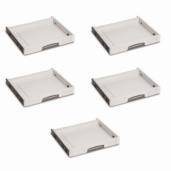 These pull out shelf's are suitable for all systainer, except the MINI, MIDI, and MAXI line. Place your containers on these drawers and attach them on telescopic rails to easily slide them in and out of storage.